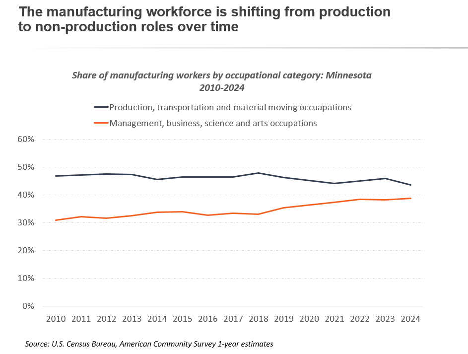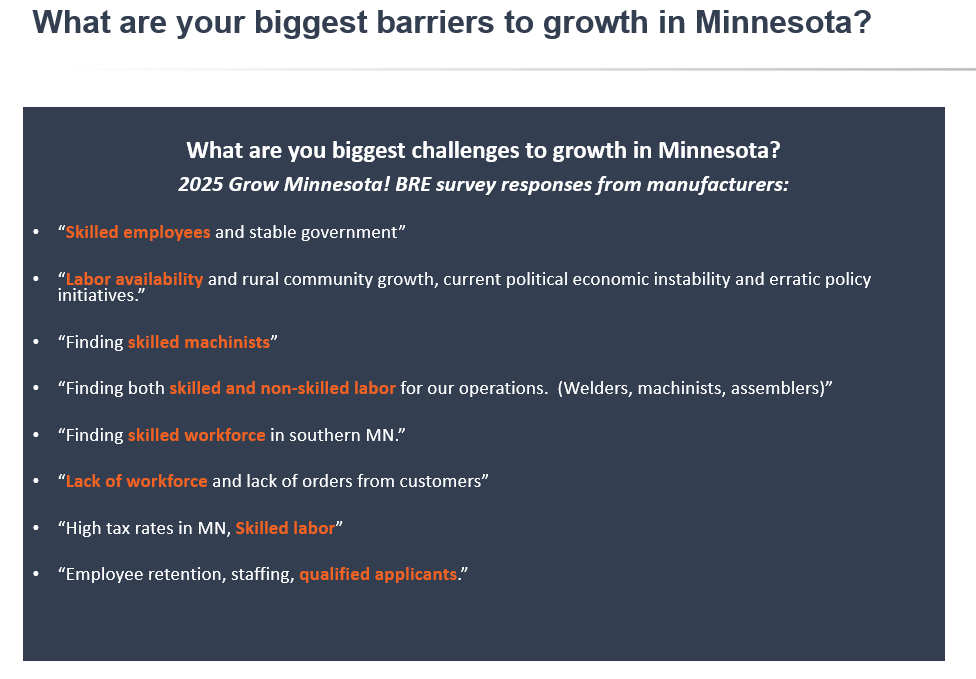 This dual reality—strong workforce quality paired with limited workforce availability—now sits at the center of Minnesota’s manufacturing competitiveness and will shape the sector’s outlook in the years ahead.