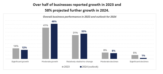 Over half of businesses surveyed reported overall growth in business performance during 2023, and 58% predicted growth in 2024. As we look back on the year, we want to hear what you think. Click here to participate in the 2025 business retention and expansion survey.