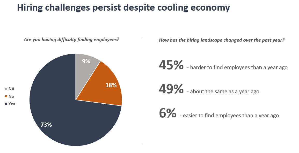 - Business expansion projects may become more capital-intensive as firms look to automation to manage workforce shortages.