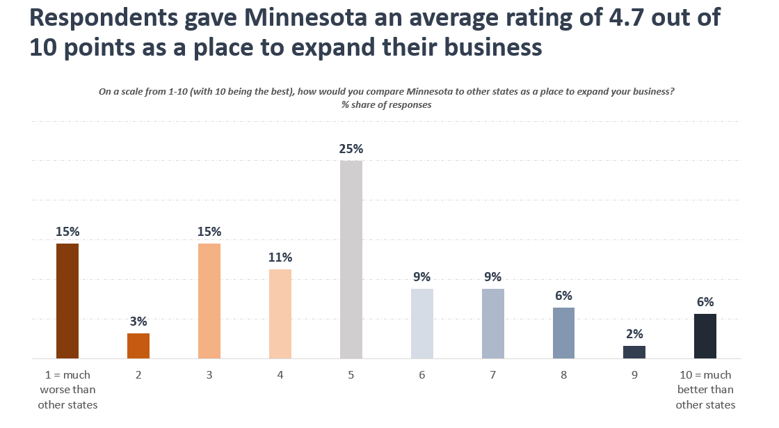 Yet this default setting does not mean businesses are value-neutral about their location. Respondents cited a mix of positive and negative reactions about their decisions to expand in Minnesota.