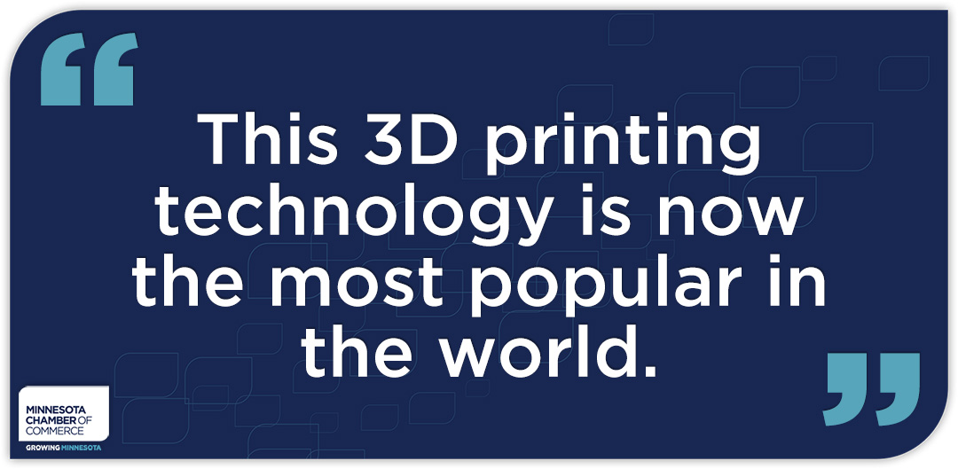 Stratasys started in Eden Prairie in 1988, when Scott Crump had an idea about how to create a toy for his 2-year-old daughter. Today, they are a publicly-traded global leader in 3D printing and manufacturing. They employ more than 2,000 people worldwide, including 600 in Minnesota. “This 3D printing technology is now the most popular in the world,” says Rich Garrity, President – Americas, of Stratasys.