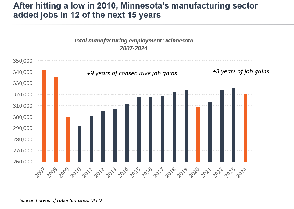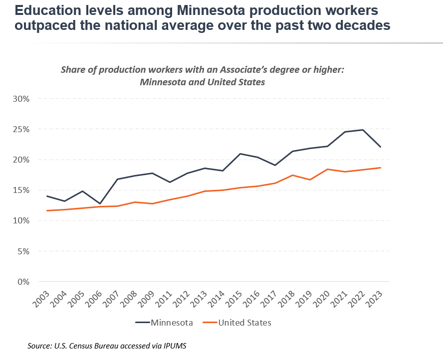 This dual reality—strong workforce quality paired with limited workforce availability—now sits at the center of Minnesota’s manufacturing competitiveness and will shape the sector’s outlook in the years ahead.