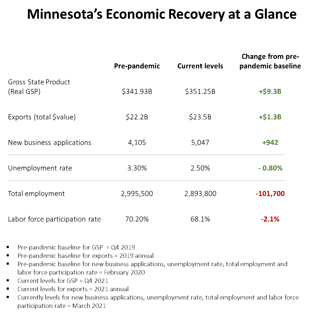 - Grow Minnesota! can provide customized economic data and reports upon request. Contact us at soneil@mnchamber.com for more information.