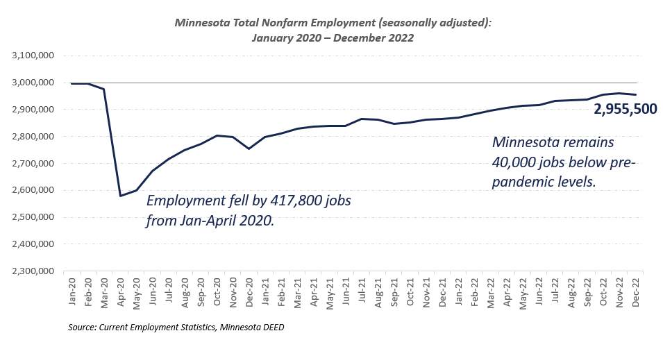 NOTE: The Minnesota Department of Employment and Economic Development (DEED) released revised jobs numbers on March 9 that are not reflected in this analysis. Stay tuned for the upcoming economic snapshot that will feature an analysis of this new data.