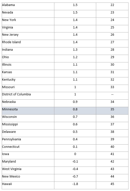 Source: Minnesota Chamber of Commerce analysis of Bureau of Economic Analysis data