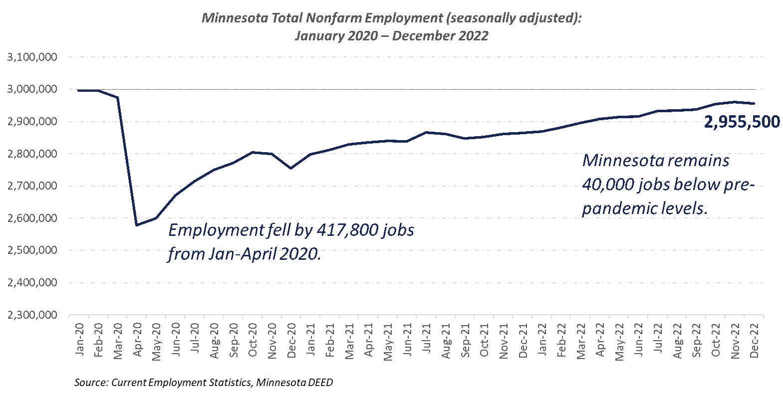 NOTE: The Minnesota Department of Employment and Economic Development (DEED) released revised jobs numbers on March 9 that are not reflected in this analysis. Stay tuned for the upcoming economic snapshot that will feature an analysis of this new data.