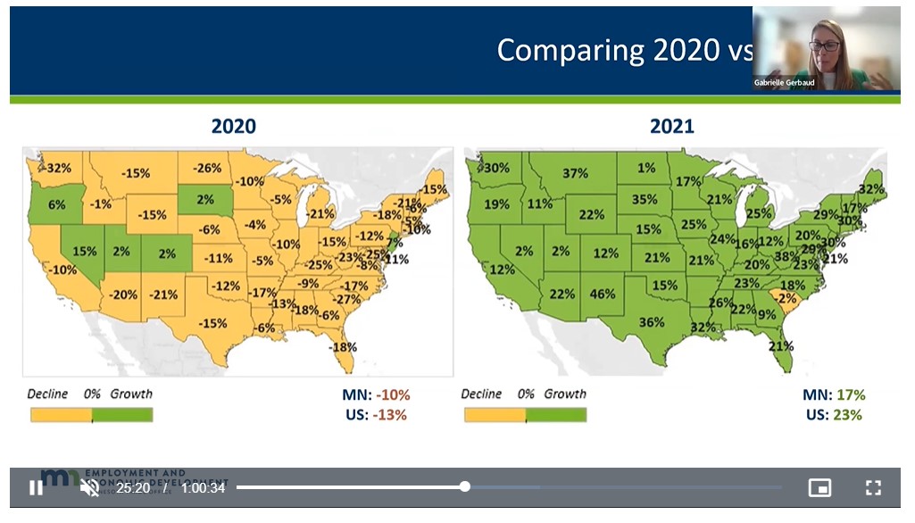 - Advanced economies in Europe and Asia continue to be large export markets for Minnesota. However, growth to these countries has been slower over time and declined by -12% during the 2020 downturn and 2021 recovery period.