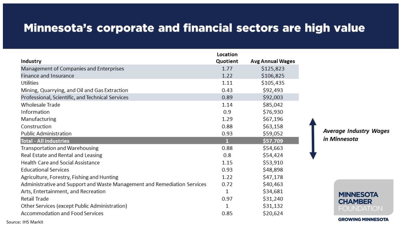 1. Minnesota’s corporate and financial sector is big and diverse, contributing significant economic value to Minnesota as a whole.
