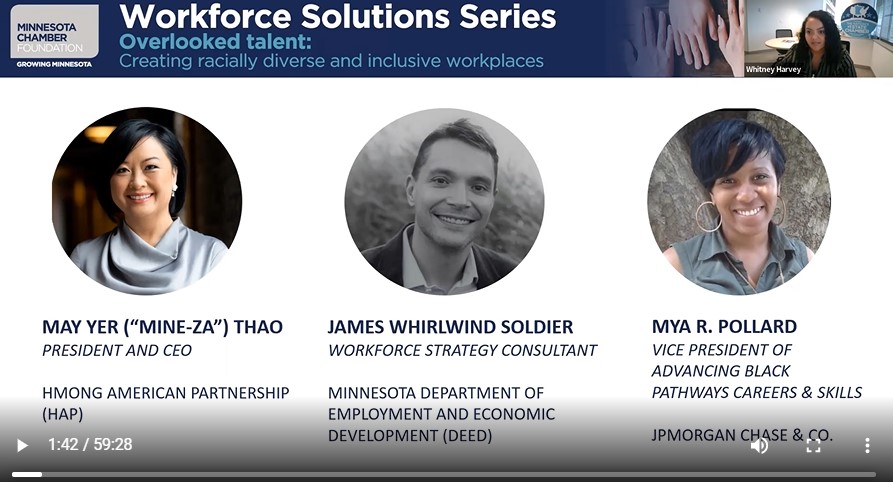 The Minnesota Chamber Foundation understands that inclusive workplaces are essential to build and welcome our future workforce. The Minnesota business community plays an important role in advancing workforce inclusion statewide, and our goal is to connect you with resources and support you in doing so. If you would like one-on-one assistance to help with your business’s workforce inclusion strategy, please contact Whitney Harvey, our Senior Director of Workforce Solutions at wharvey@mnchamber.com.
