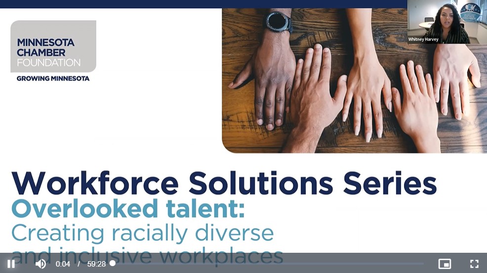 The Minnesota Chamber Foundation understands that inclusive workplaces are essential to build and welcome our future workforce. The Minnesota business community plays an important role in advancing workforce inclusion statewide, and our goal is to connect you with resources and support you in doing so. If you would like one-on-one assistance to help with your business’s workforce inclusion strategy, please contact Whitney Harvey, our Senior Director of Workforce Solutions at wharvey@mnchamber.com.